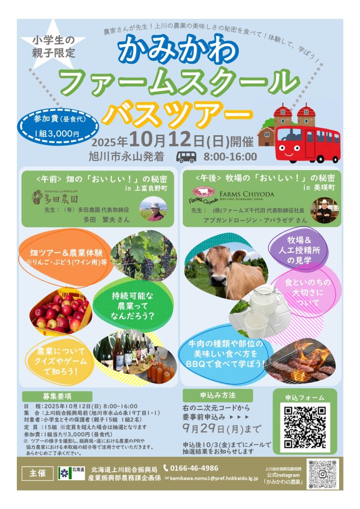 【かみかわファームスクールバスツアー募集のお知らせ🚌】